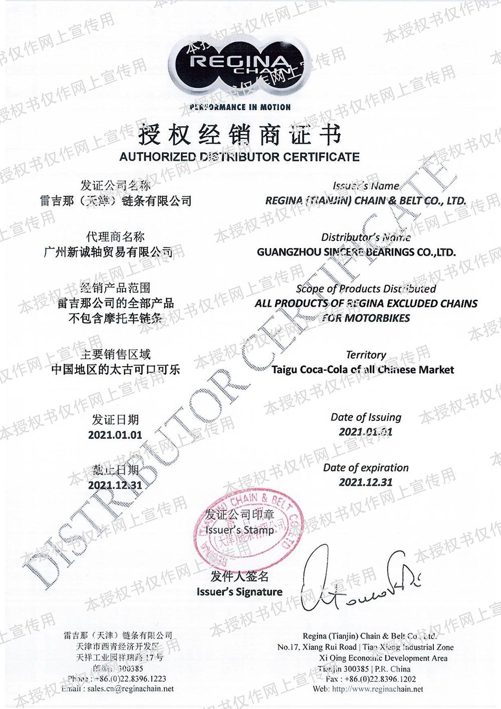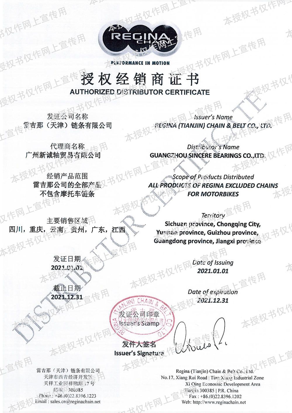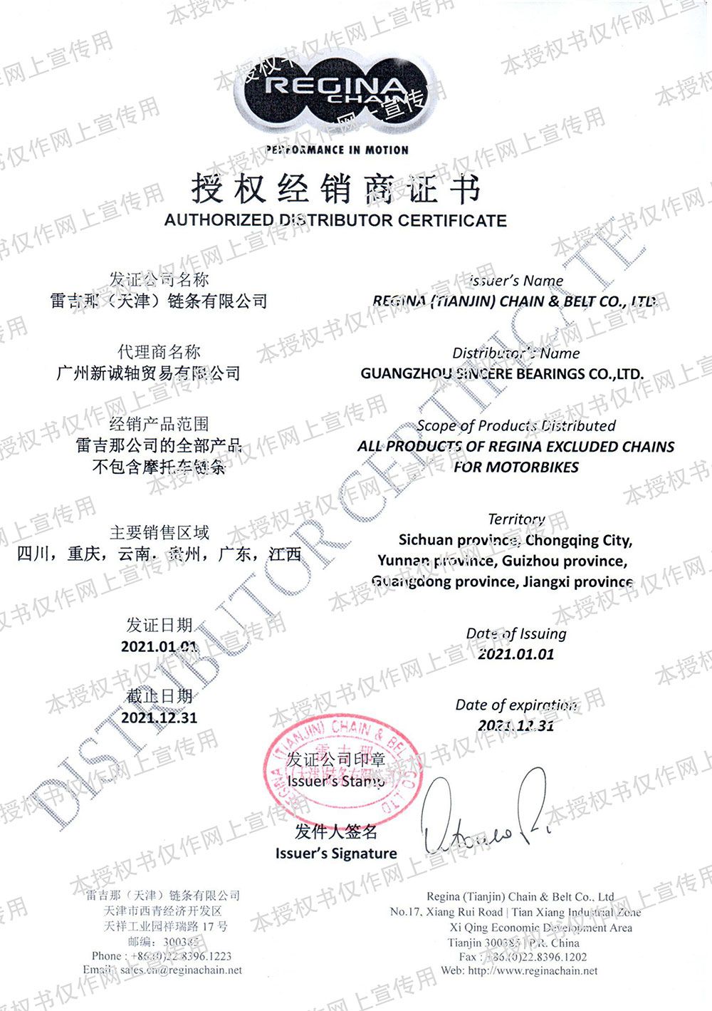 2021年雷吉那授权证书-2