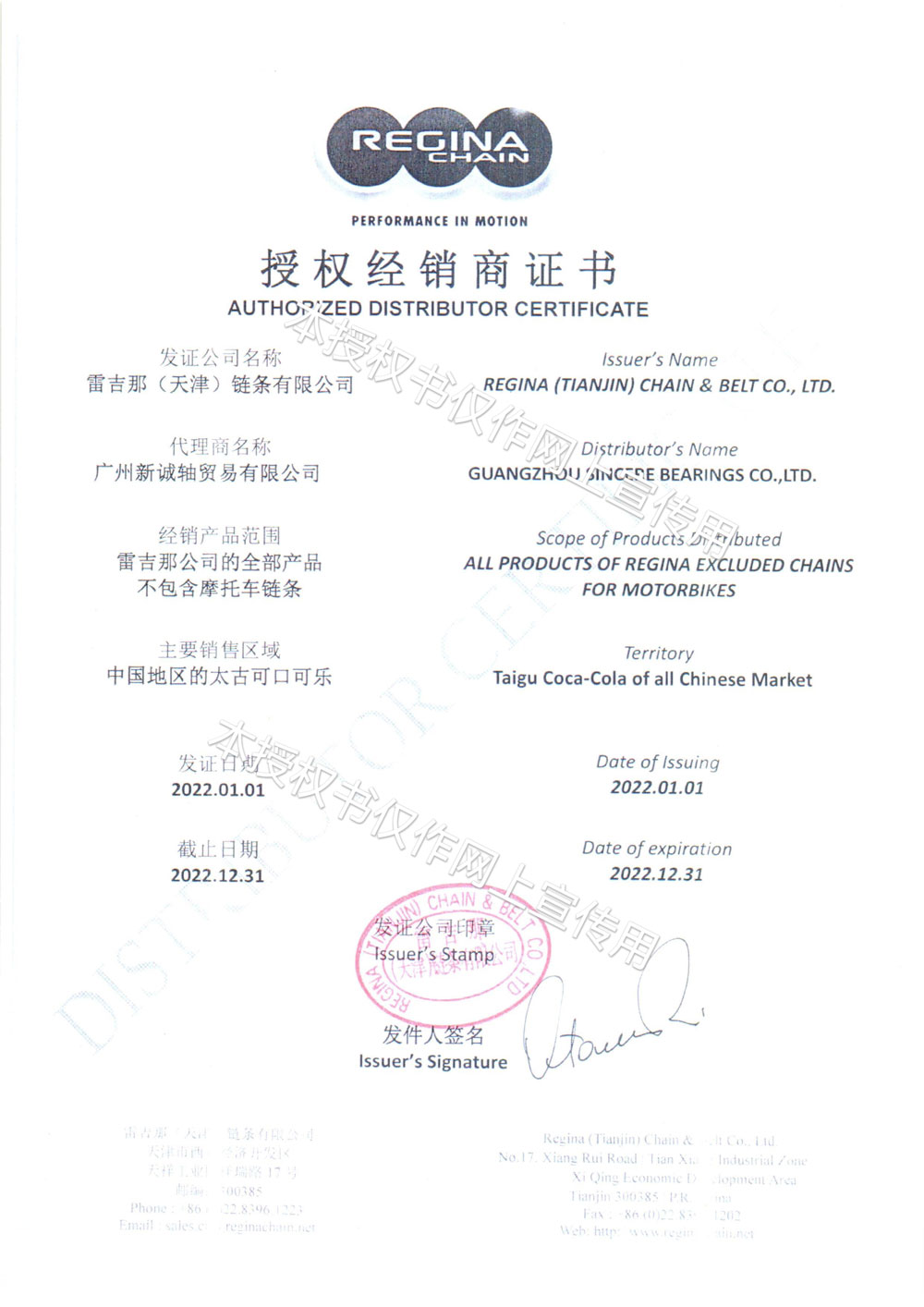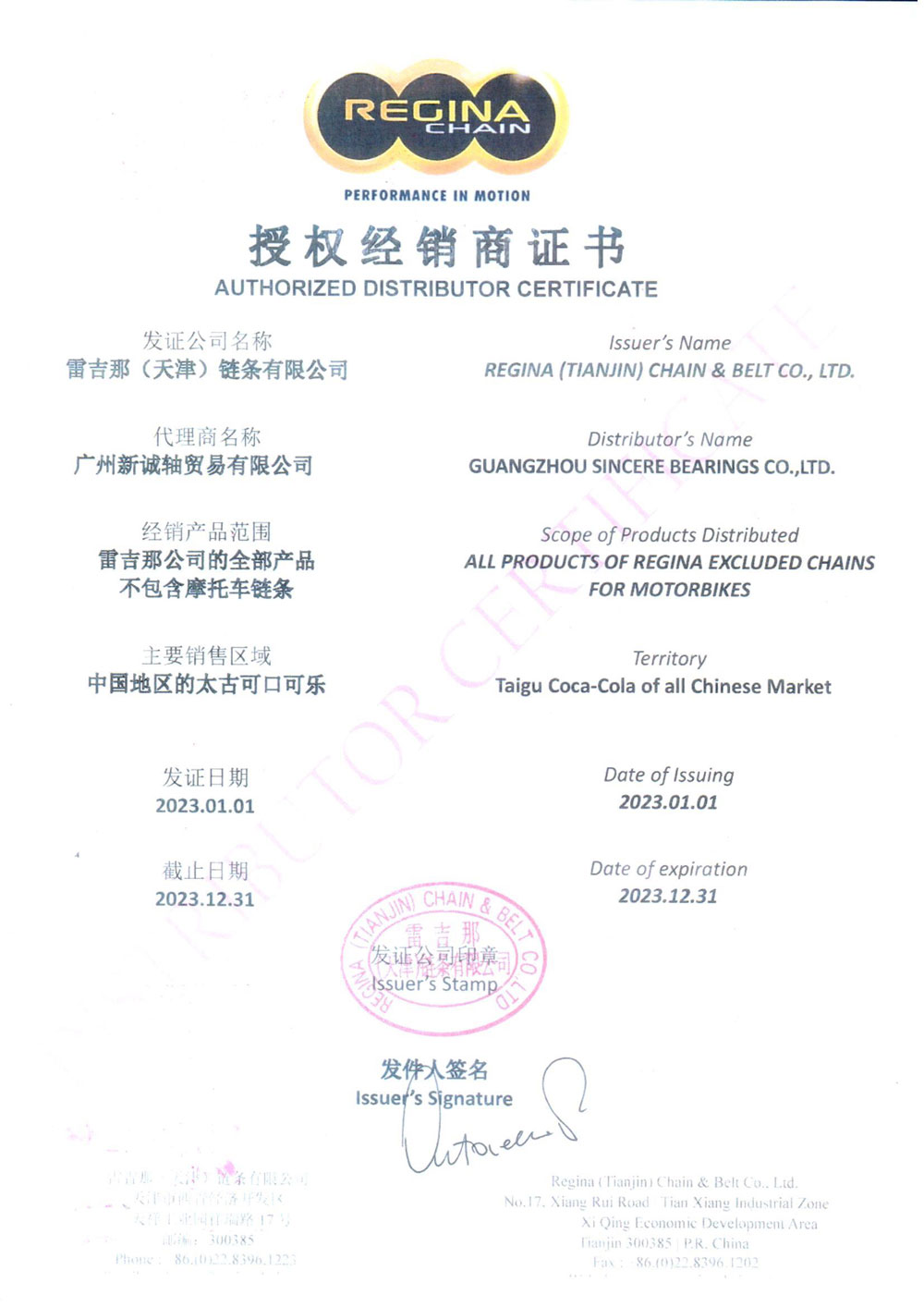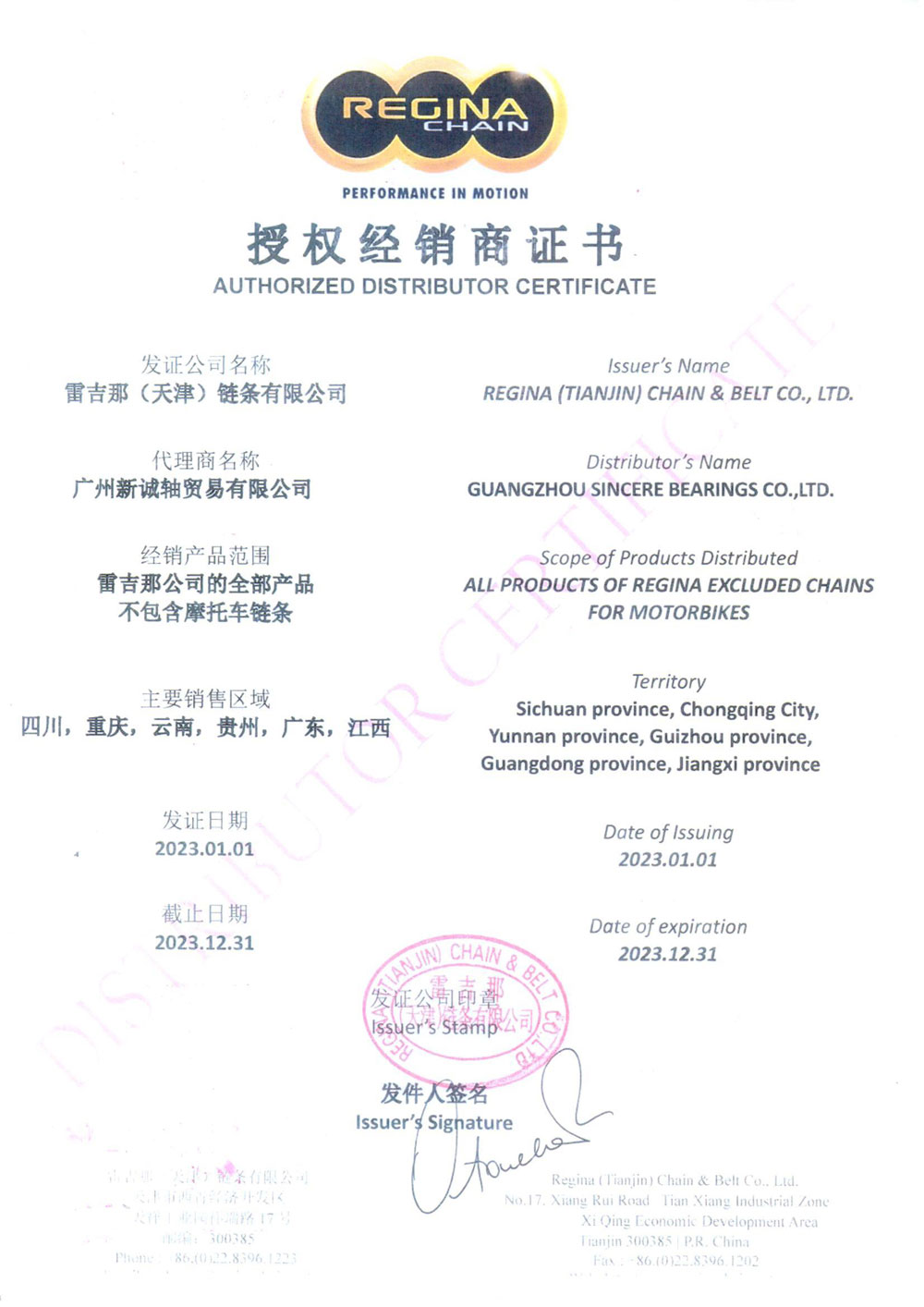 2021年雷吉那授权证书-2