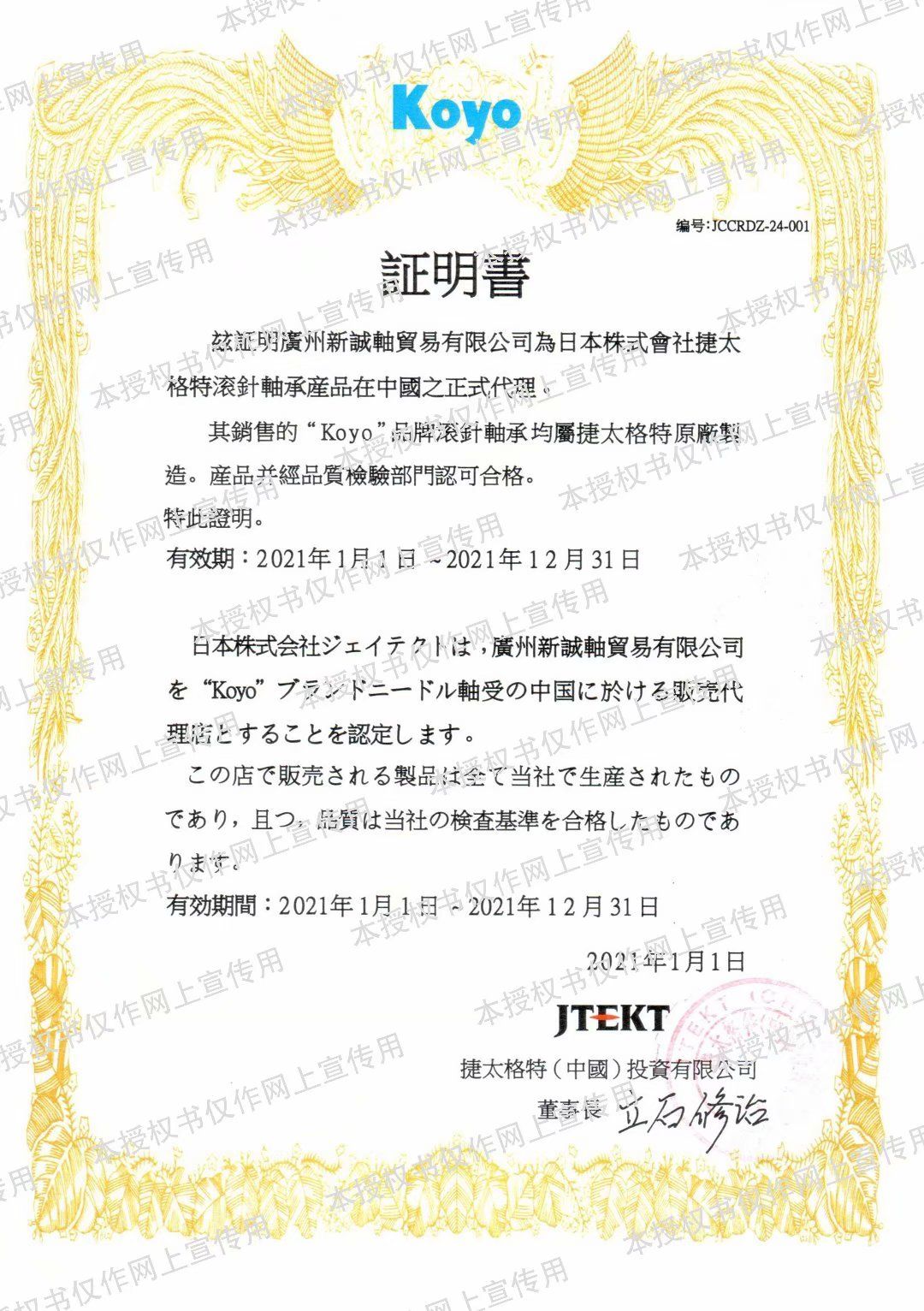2021年KOYO代理证