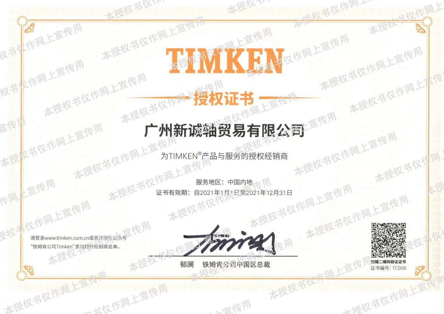 2021年TIMKEN代理证