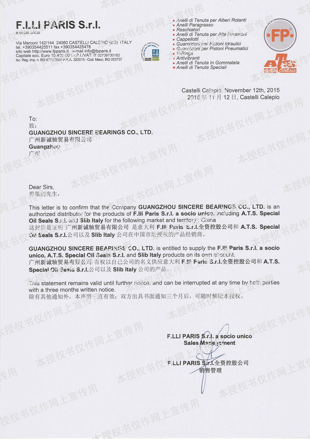 长期ATS授权书