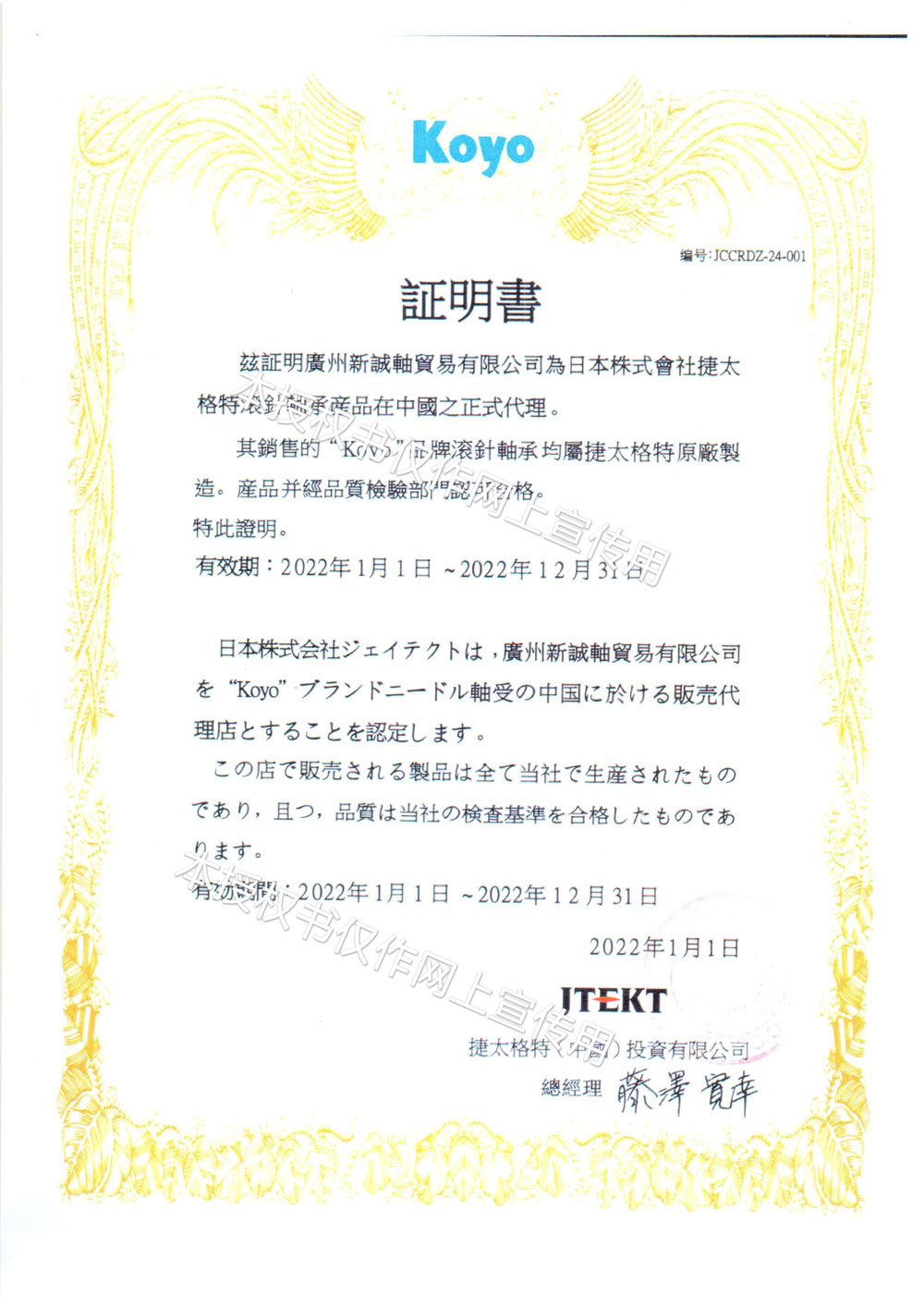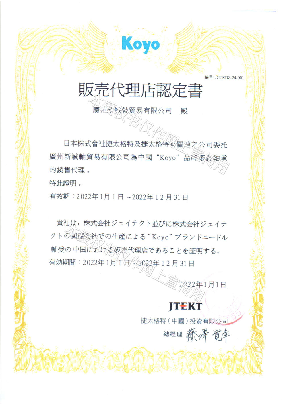 2022年KOYO代理证-1