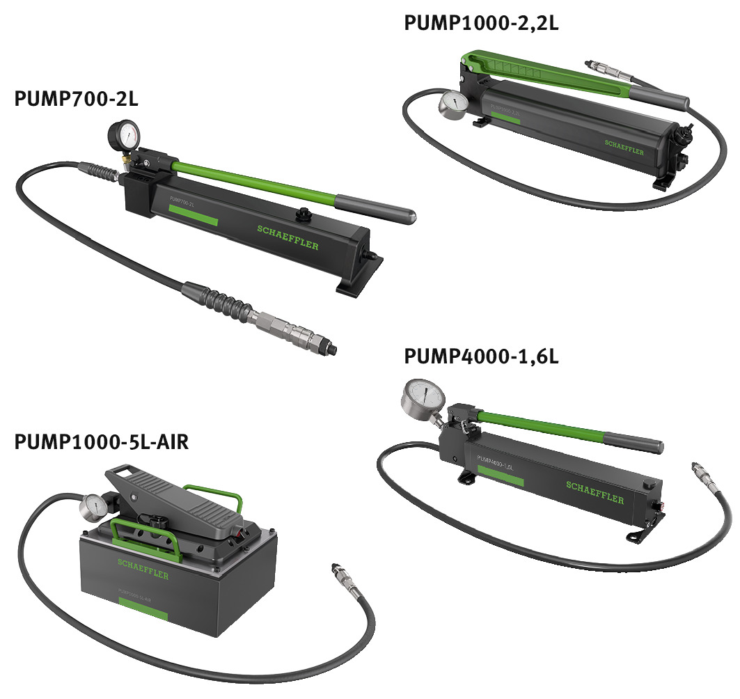 液压泵,手动、气动或电动操作的,用于安装和拆卸滚动轴承,并与液压螺母一起对它们施加压力。也可用于采用液压方法装配和拆卸过盈配合的轴承或其他旋转机器元件,其中油被压在配合表面之间,以扩大并松开结合。此外,液压泵用于工业和车间的装配和维护工作,例如驱动液压缸。
